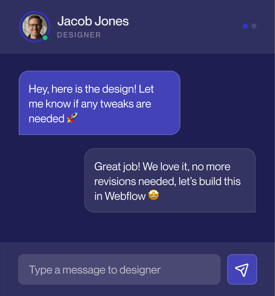 Click through your future site in Figma before a single line of code is written. Feedback happens in real-time.