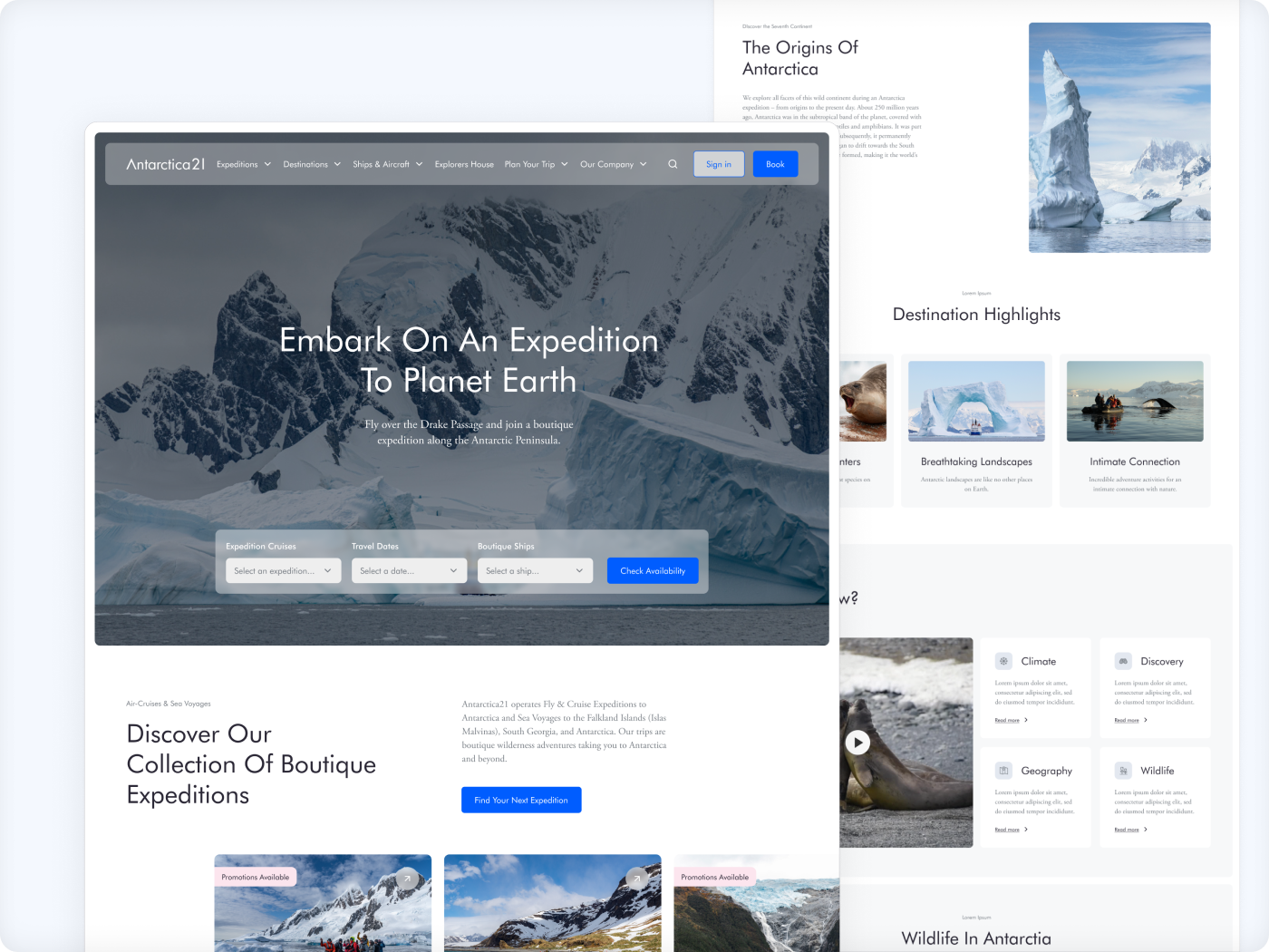 The existing website and booking flow lacked intuitive navigation and didn’t reflect Antarctica21’s premium brand. The outdated experience made it difficult for users to explore expeditions & make reservation, holding back the digital efforts.